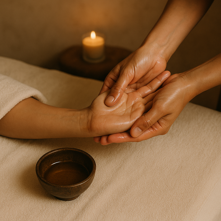 Warme Öle, sanfte Berührungen und fließende Bewegungen fördern Entgiftung, stärken das Immunsystem und bringen innere Balance.